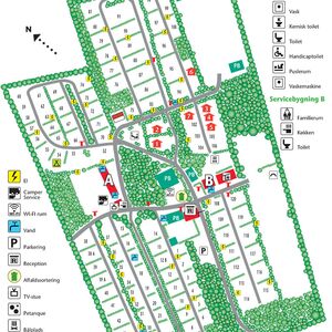 Receptionen/ butikken er åben hver dag i sæson, åbningstiden finder man på døren af receptionen.